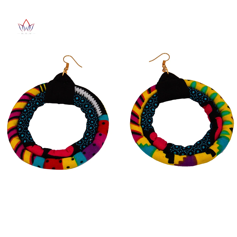 2022 African Cloth Fabric Earrings Handmade round Earrings Women African Print Ankara Big Oversized Earrings WYB693