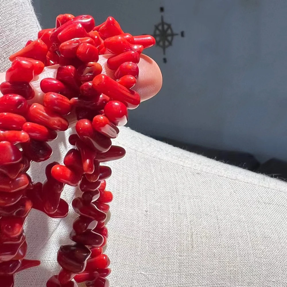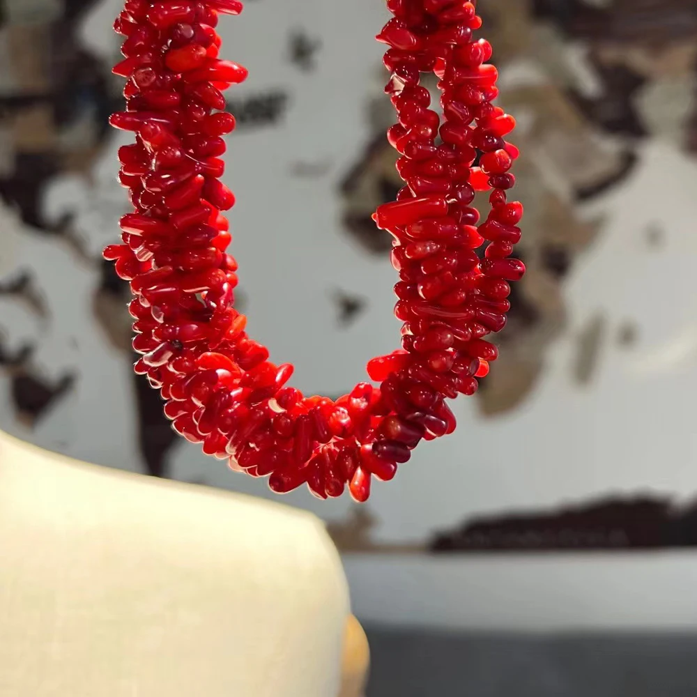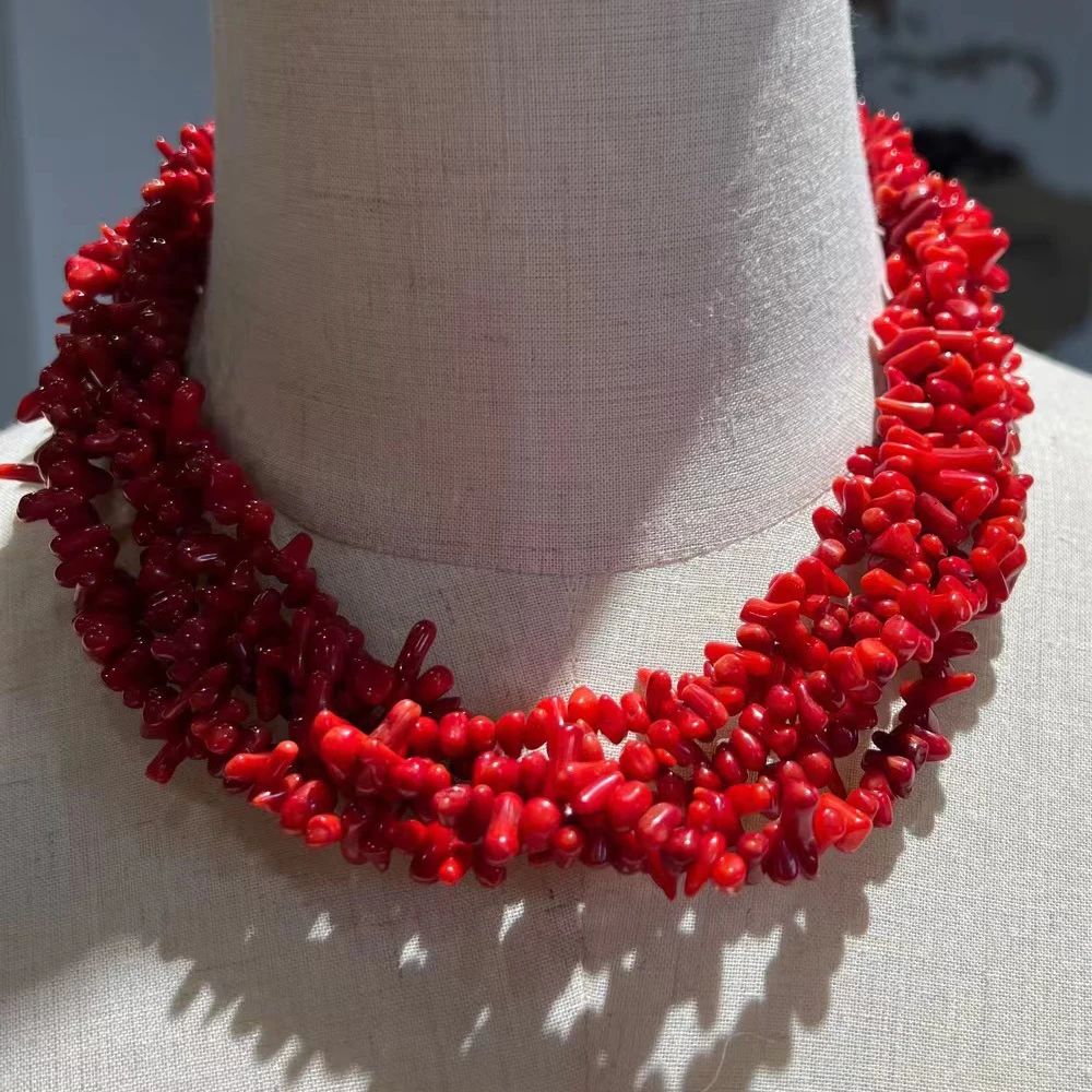 Irregular Red Coral Chip Beaded Necklace Fashion Statement Multi Layer Coral Beads Accessories Banquet Wedding Bridal Jewelry