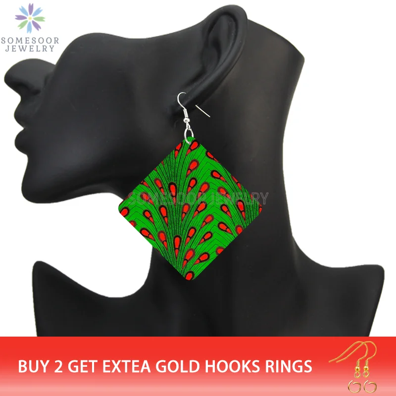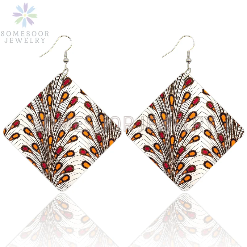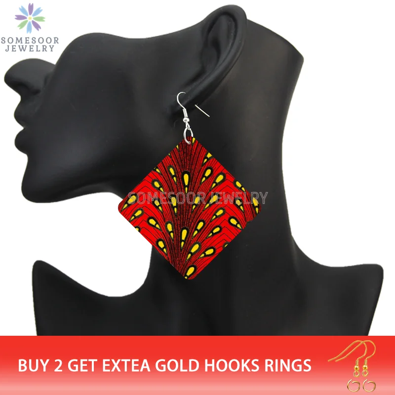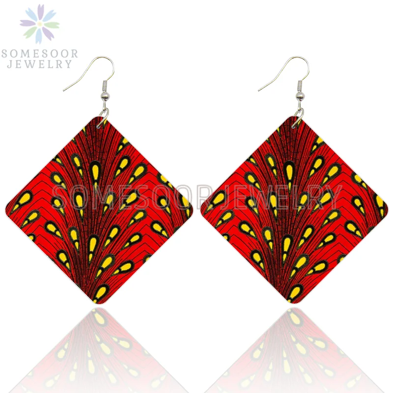 Buy SOMESOOR African Triabl Fabric Pattern Print Wooden Drop Earrings Afro Headwrap Design Geometric Dangle Jewelry For Women Gifts
